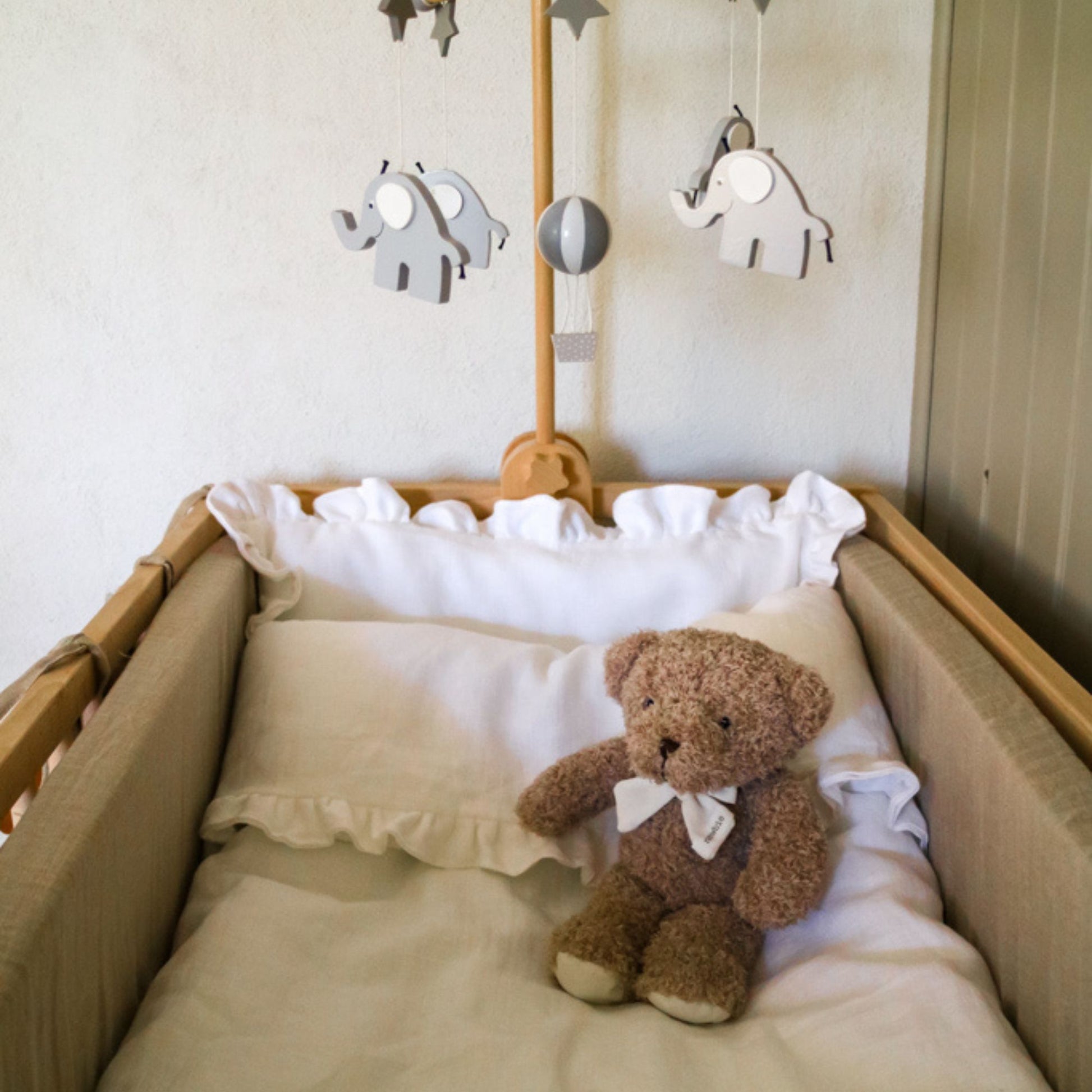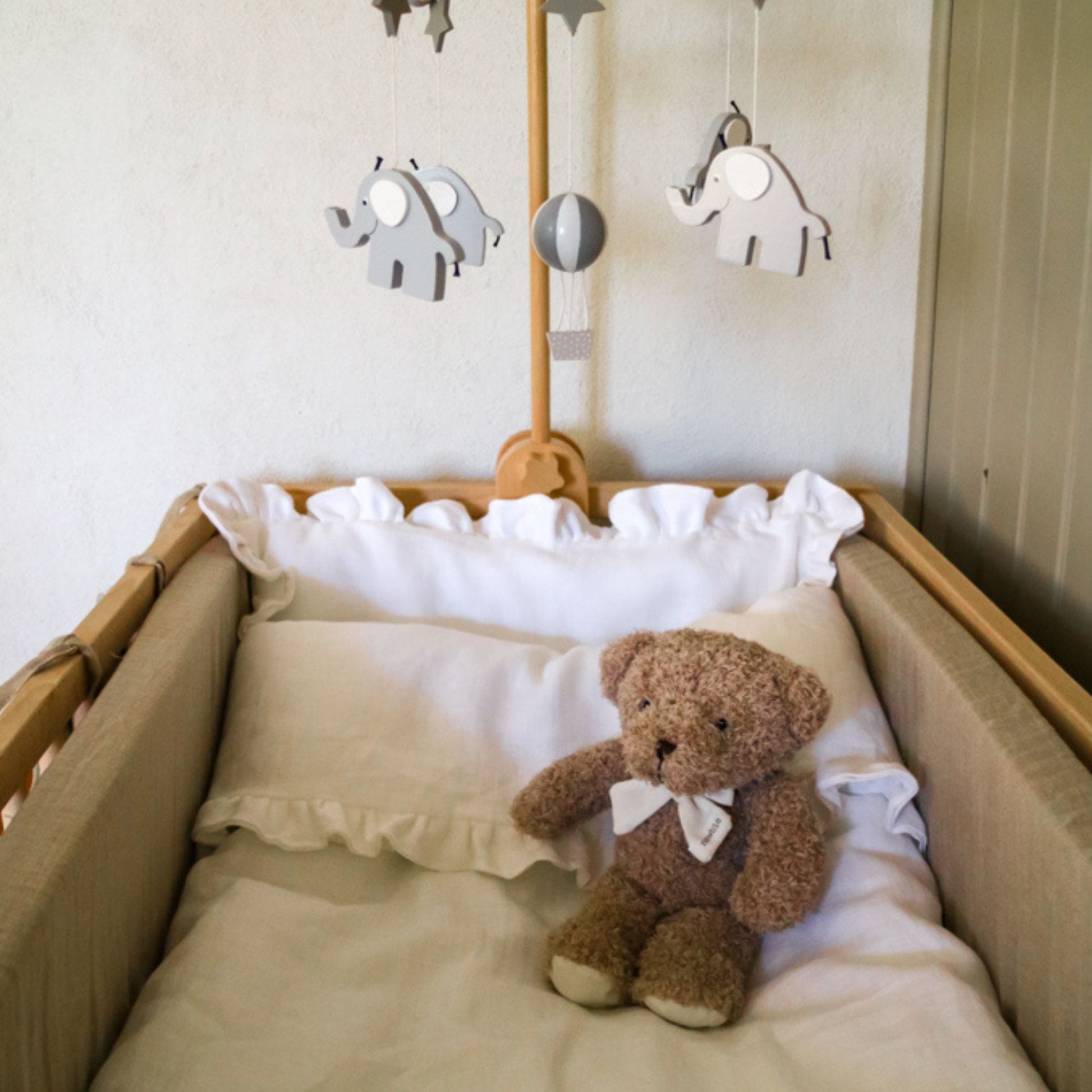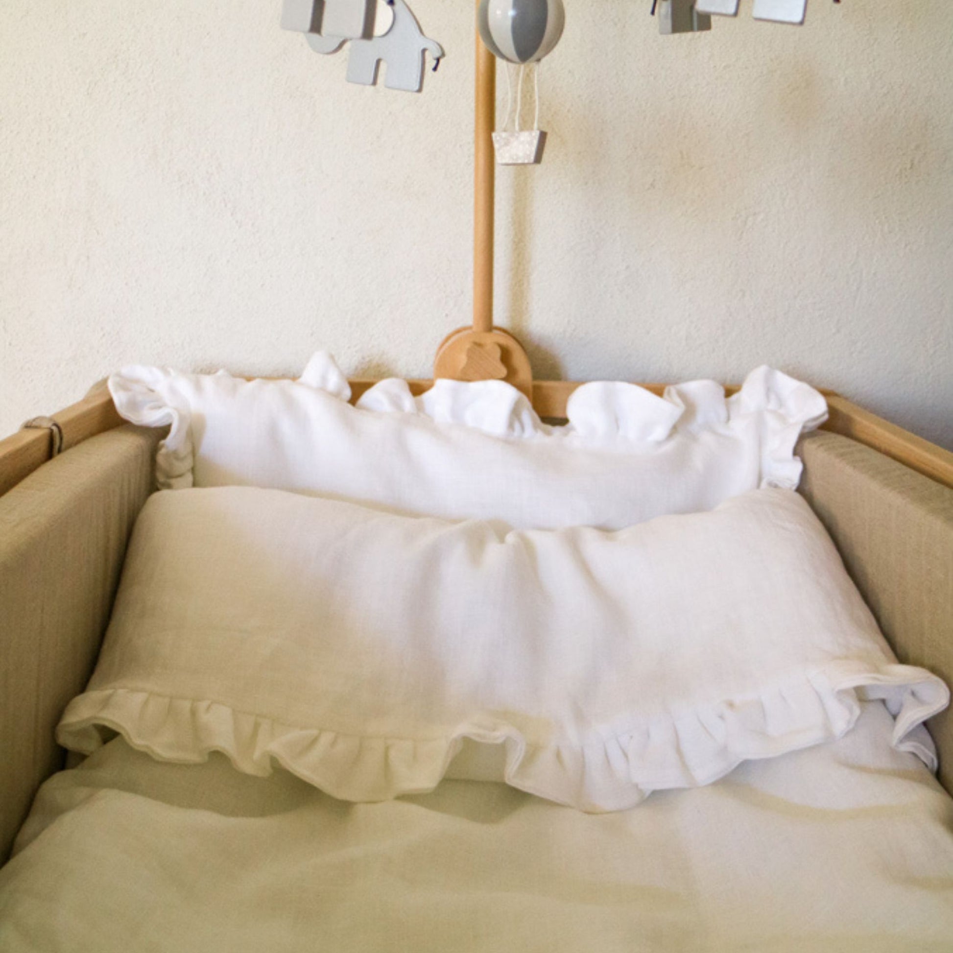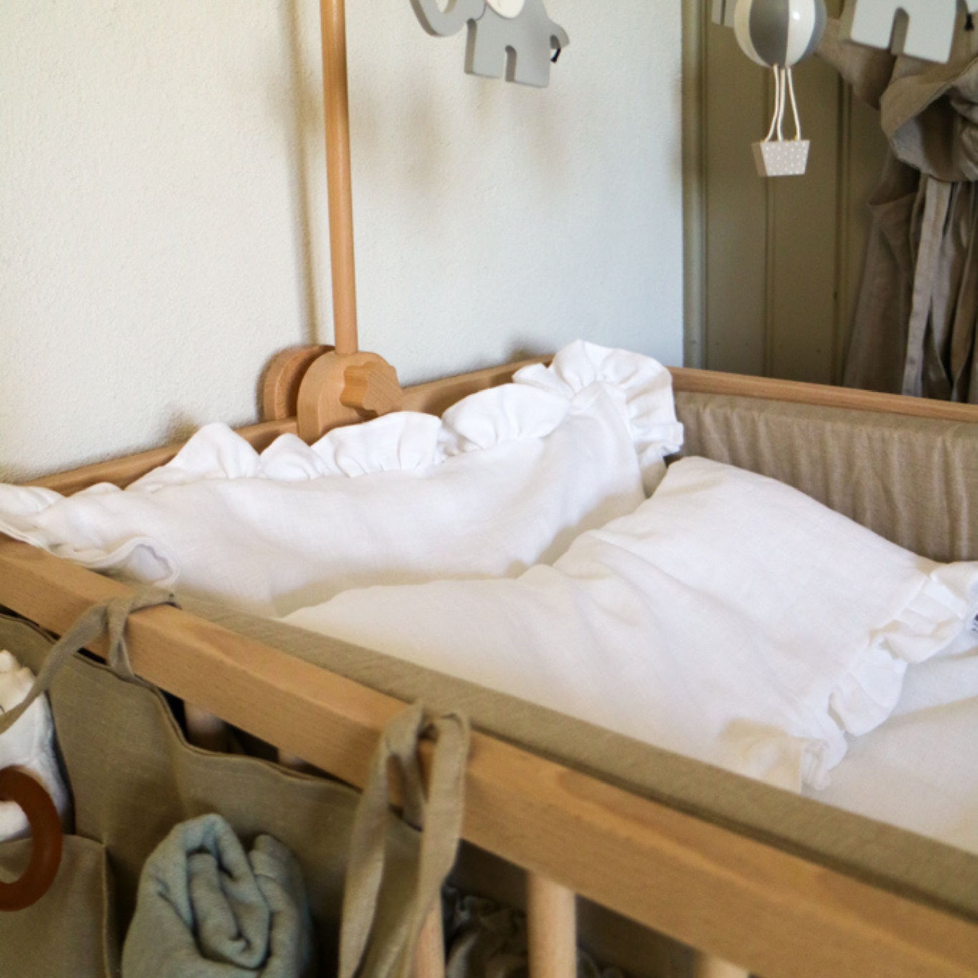 Super soft and beautiful natural linen baby/toddler bedding set which includes softened linen duvet cover and a linen pillow case.
