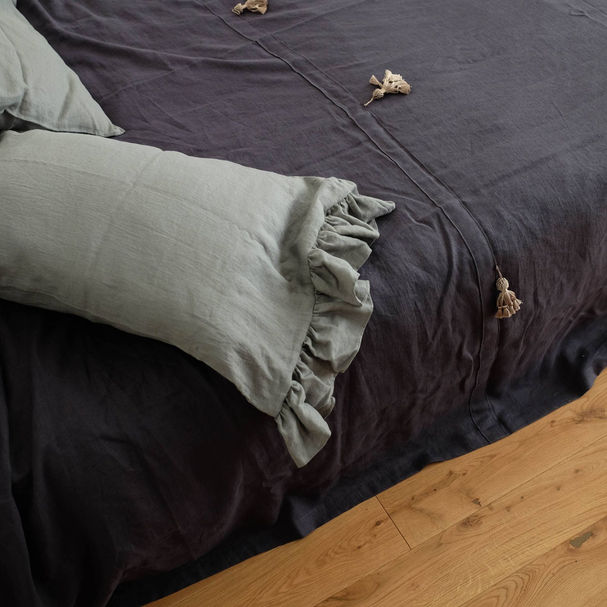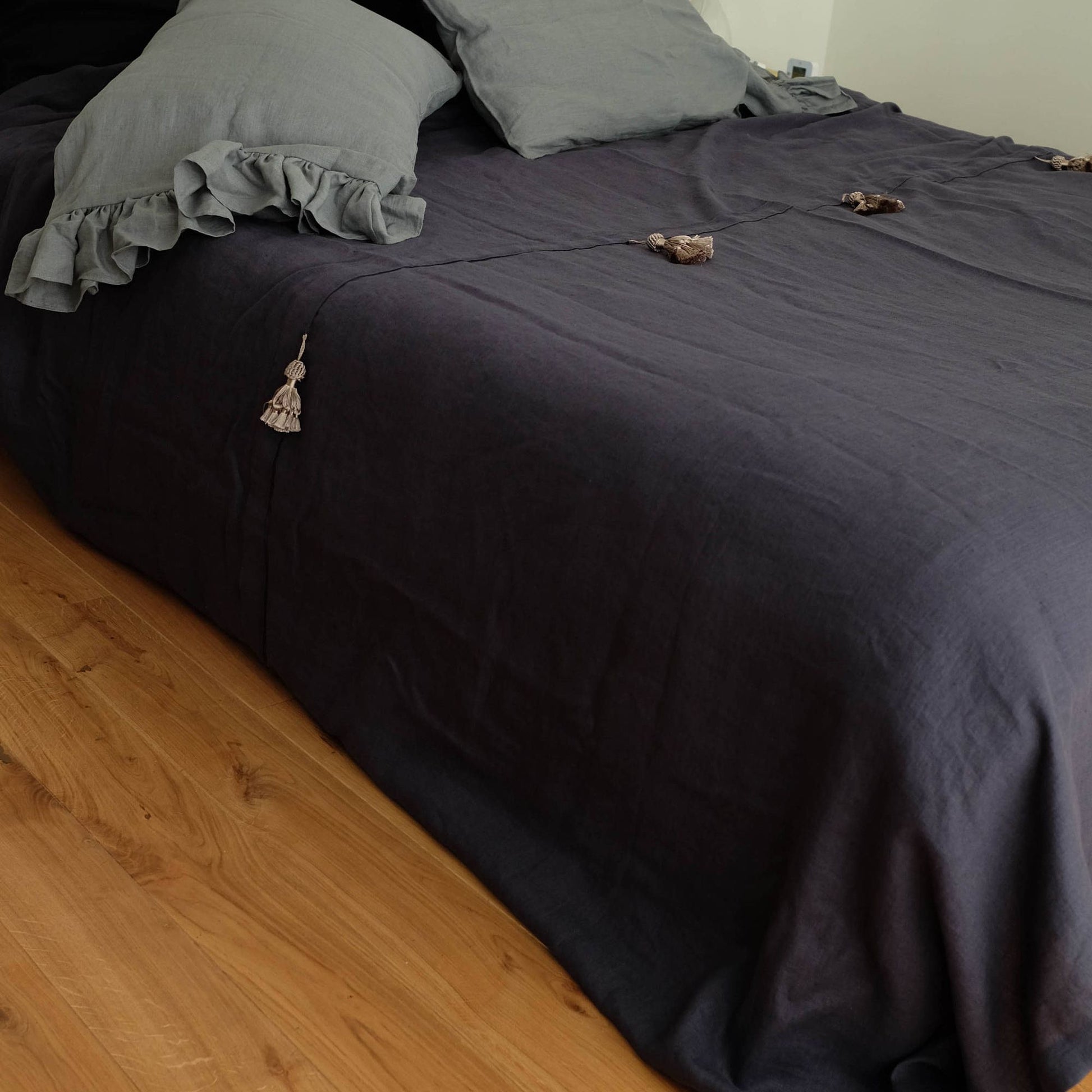 Charcoal Gray Linen Bed Throw Bohemian Style