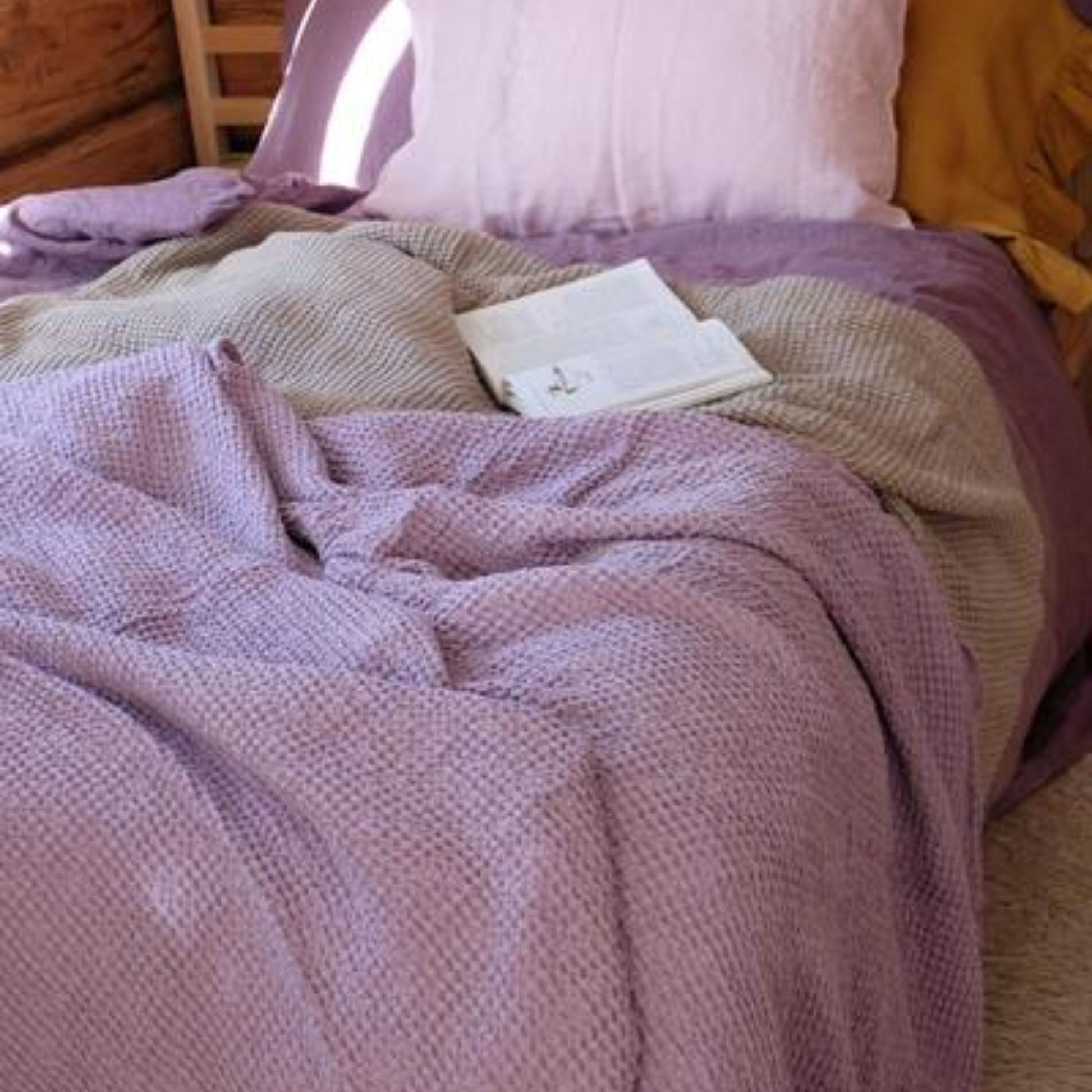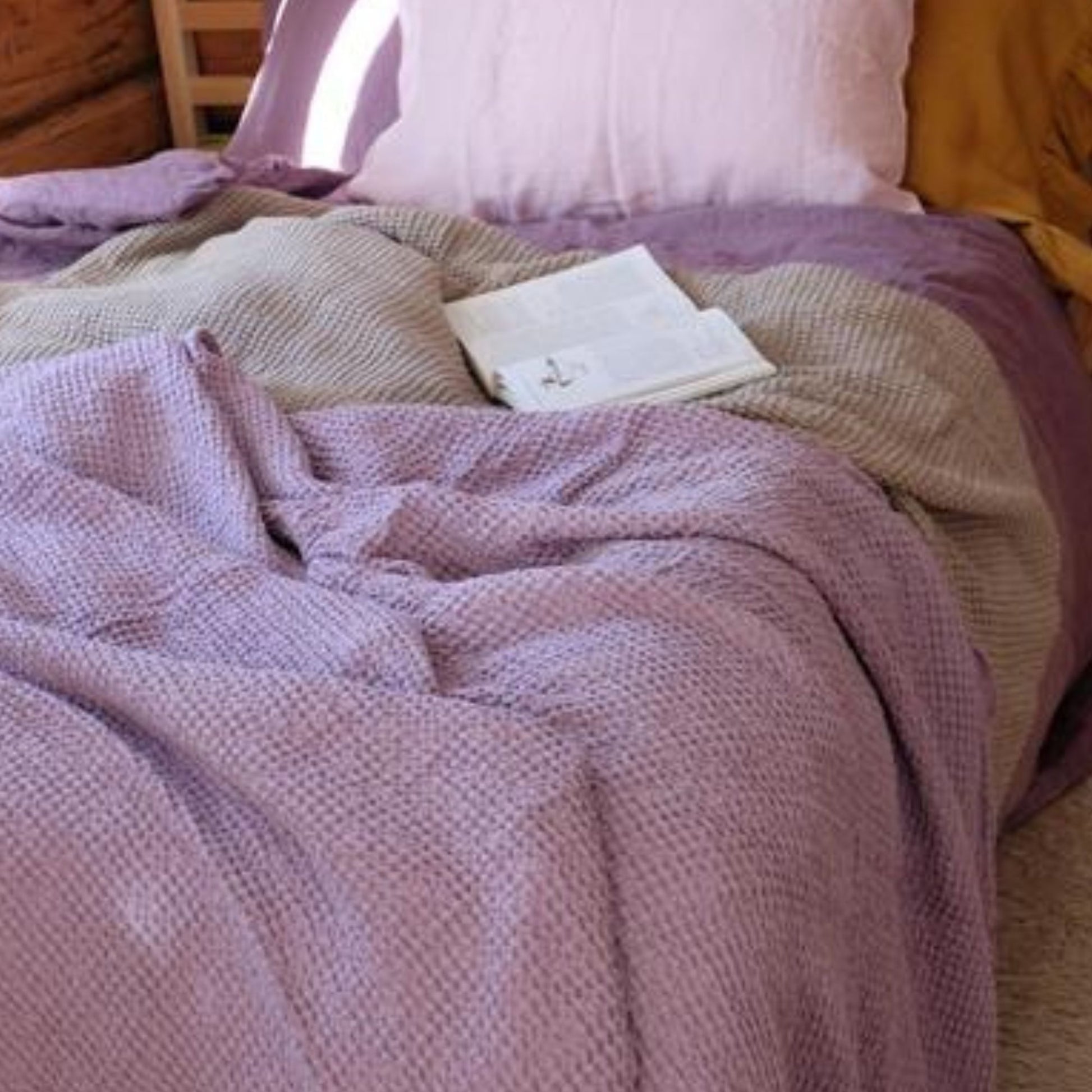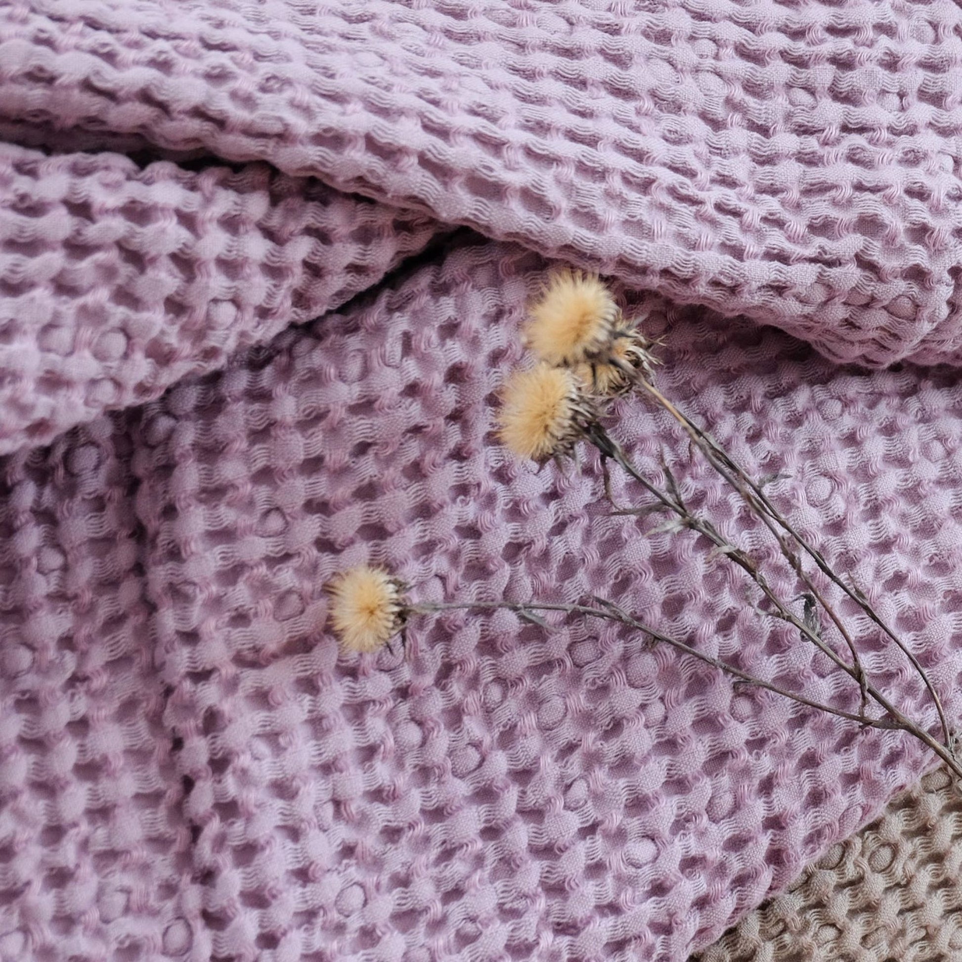 Lilac color Waffle textured Linen Blanket