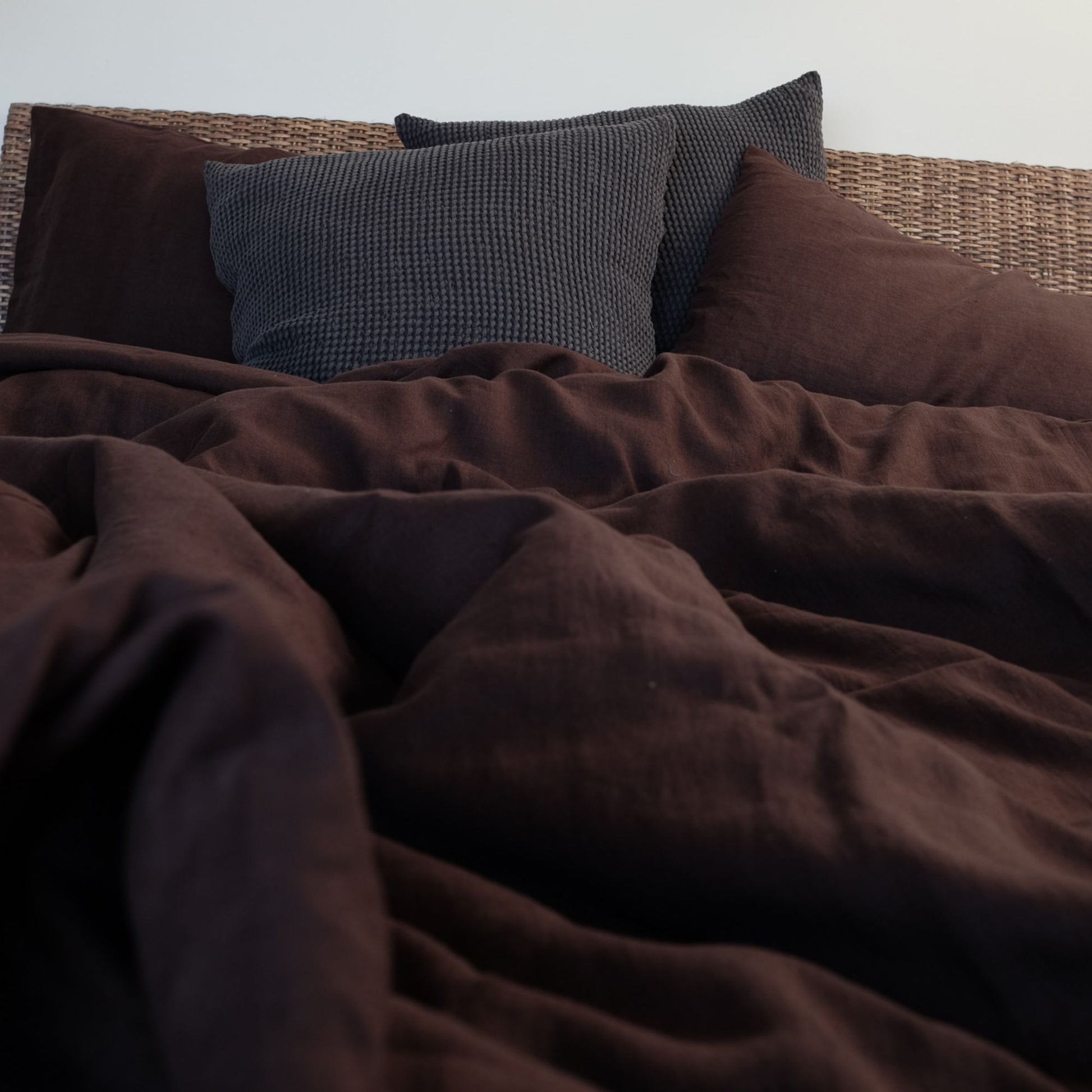 Chocolate BROWN color Linen Bedding set-Duvet cover & 2 Pillow Cases (3 pcs)