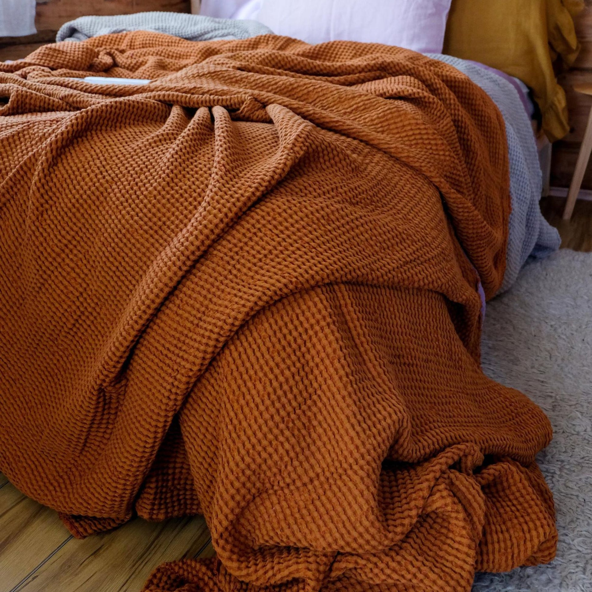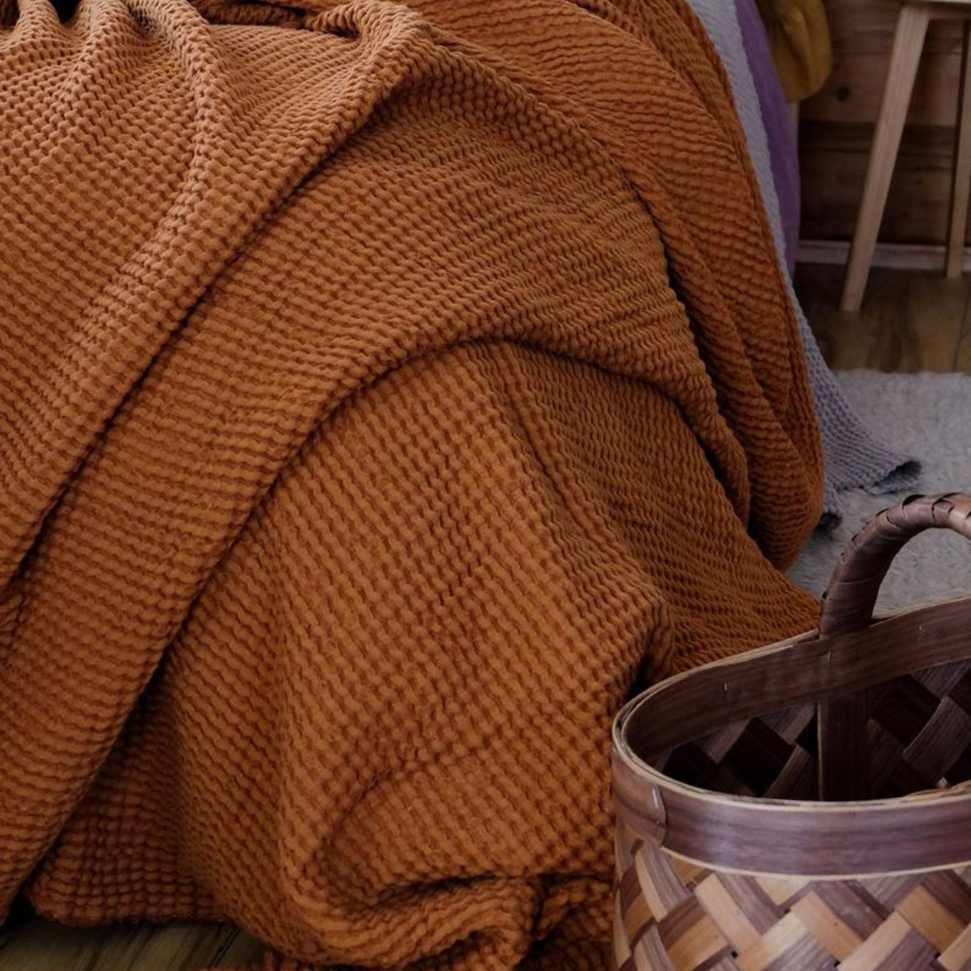 Cinnamon color Waffle textured Linen Blanket