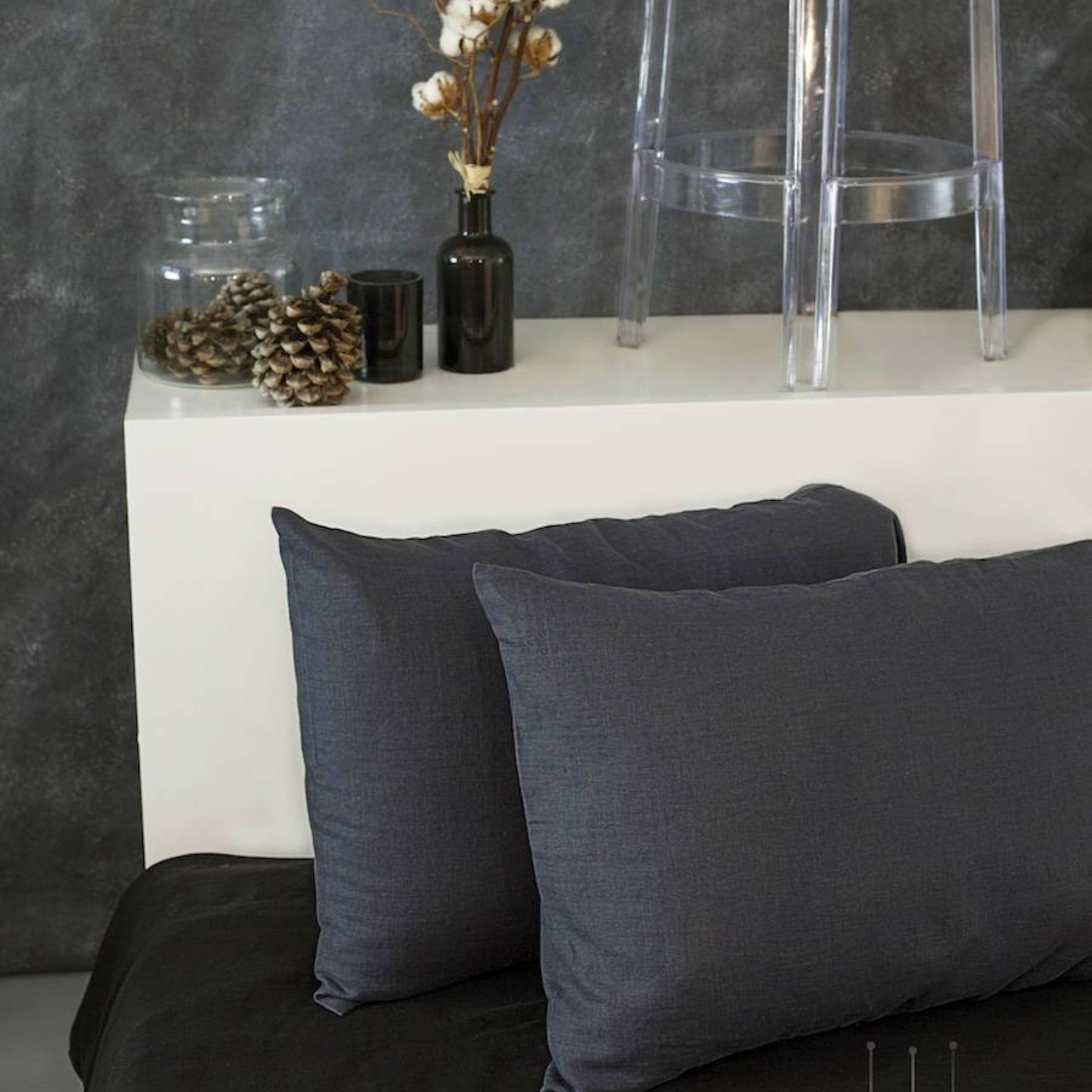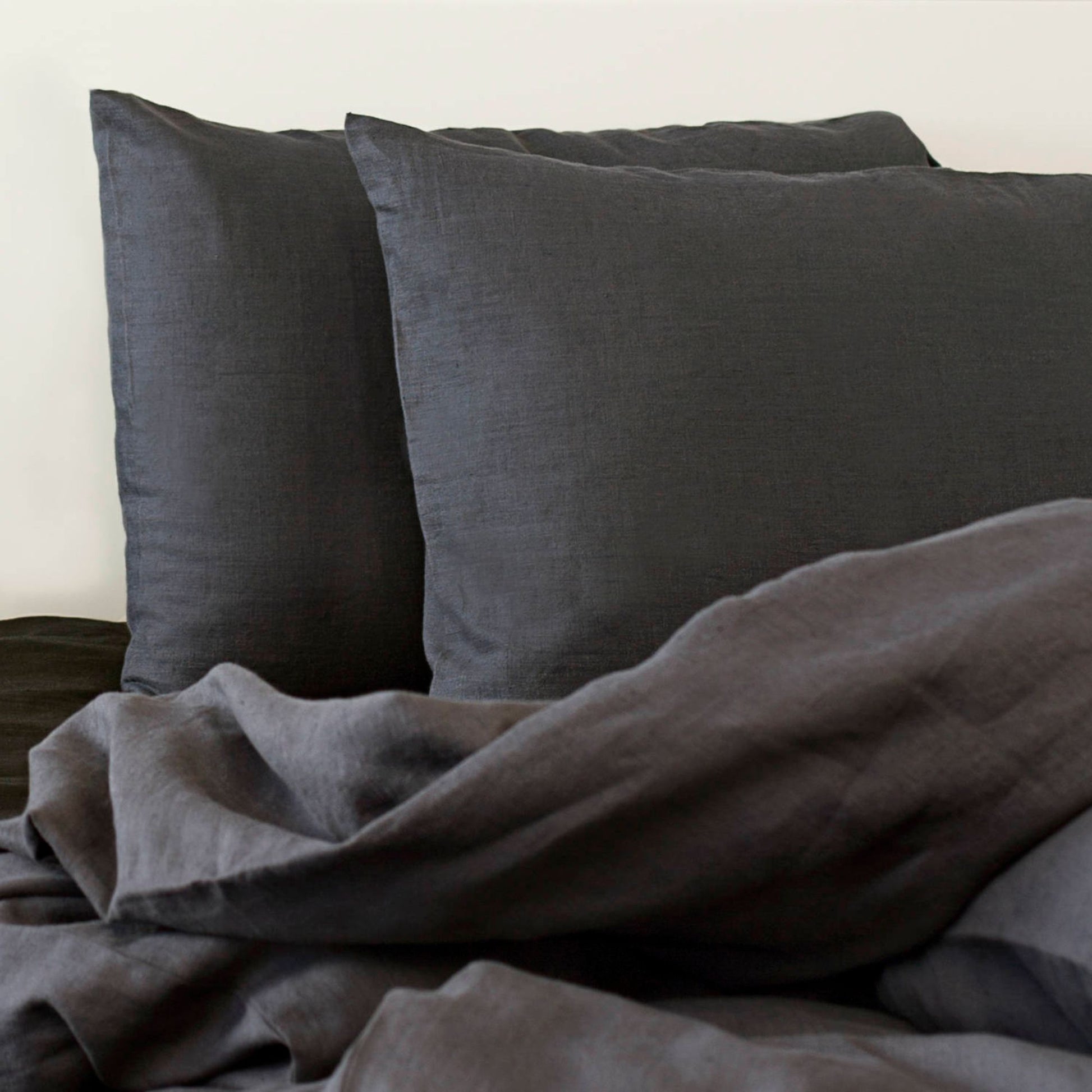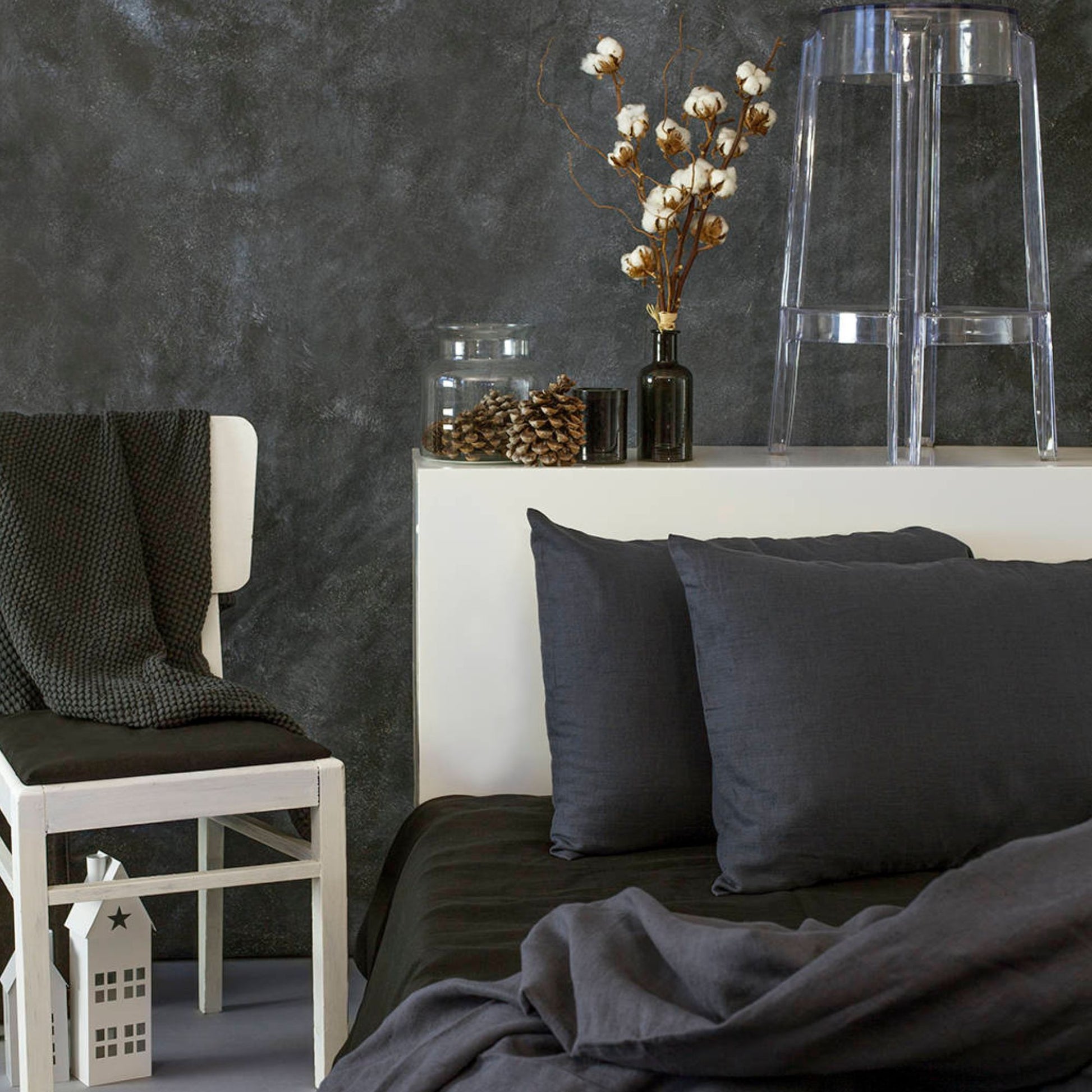 Made of 100% linen this dark gray pillow case is very soft and pleasant to your skin. Made of softened linen. Natural linen pillow covers are made of natural linen that is a skin friendly, ecological material. Linen has also a very natural texture that will add style and luxury to your bedroom. These dark gray linen pillow covers are perfect match to dark gray linen duvet cover.