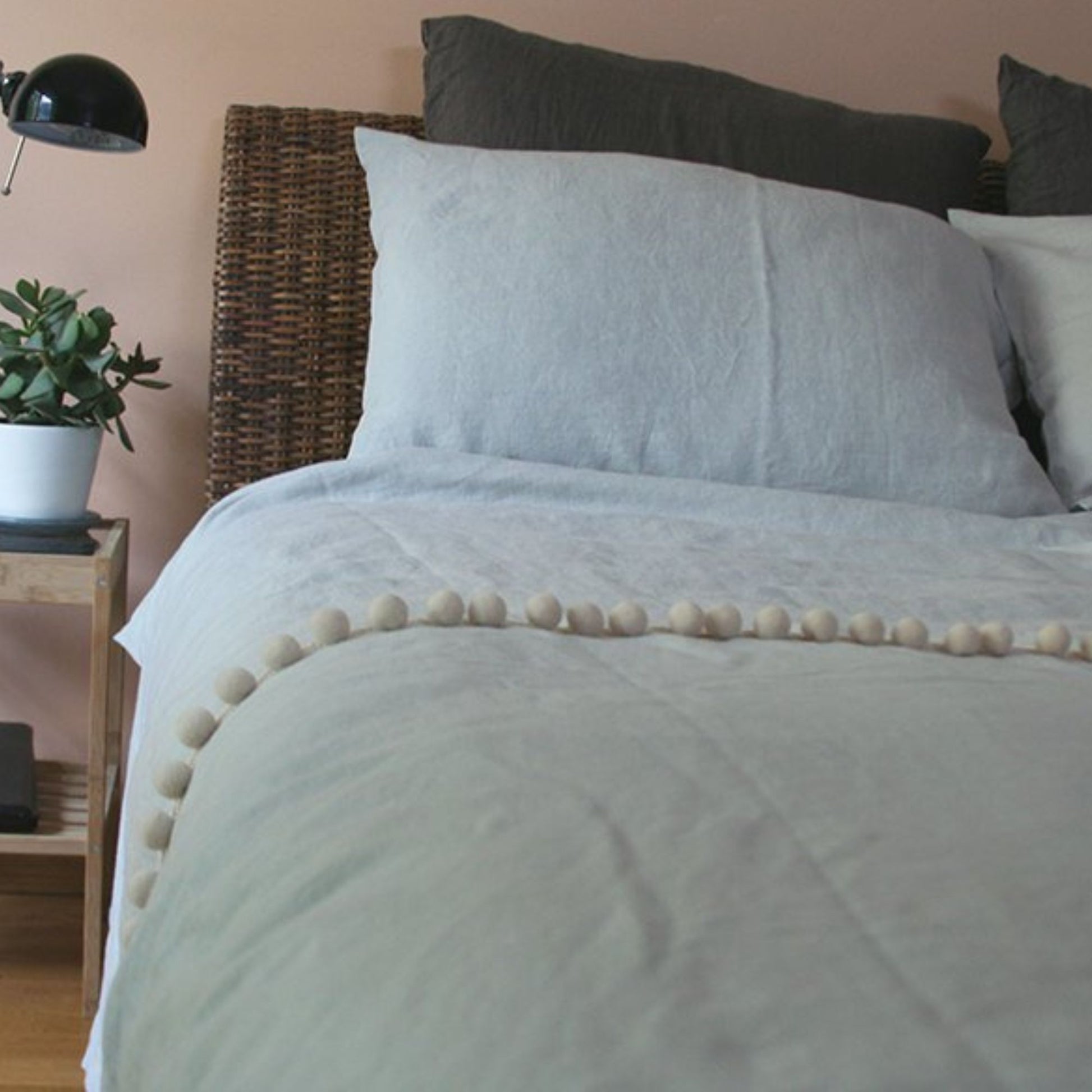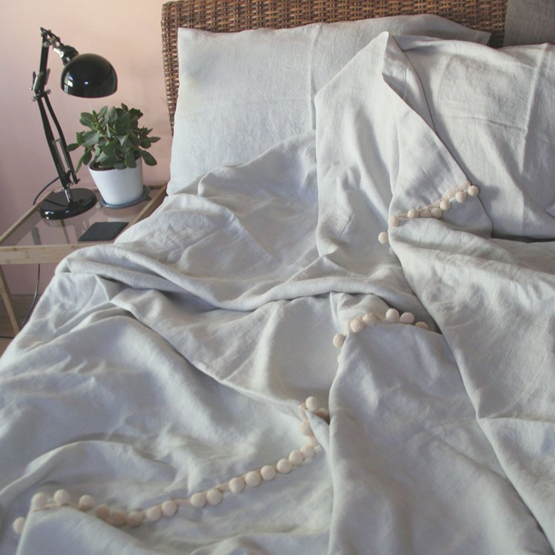 This nice light gray linen bed throw will look great and modern in your bedroom, living room. Great choice for your home interior, as well as for the summer house.