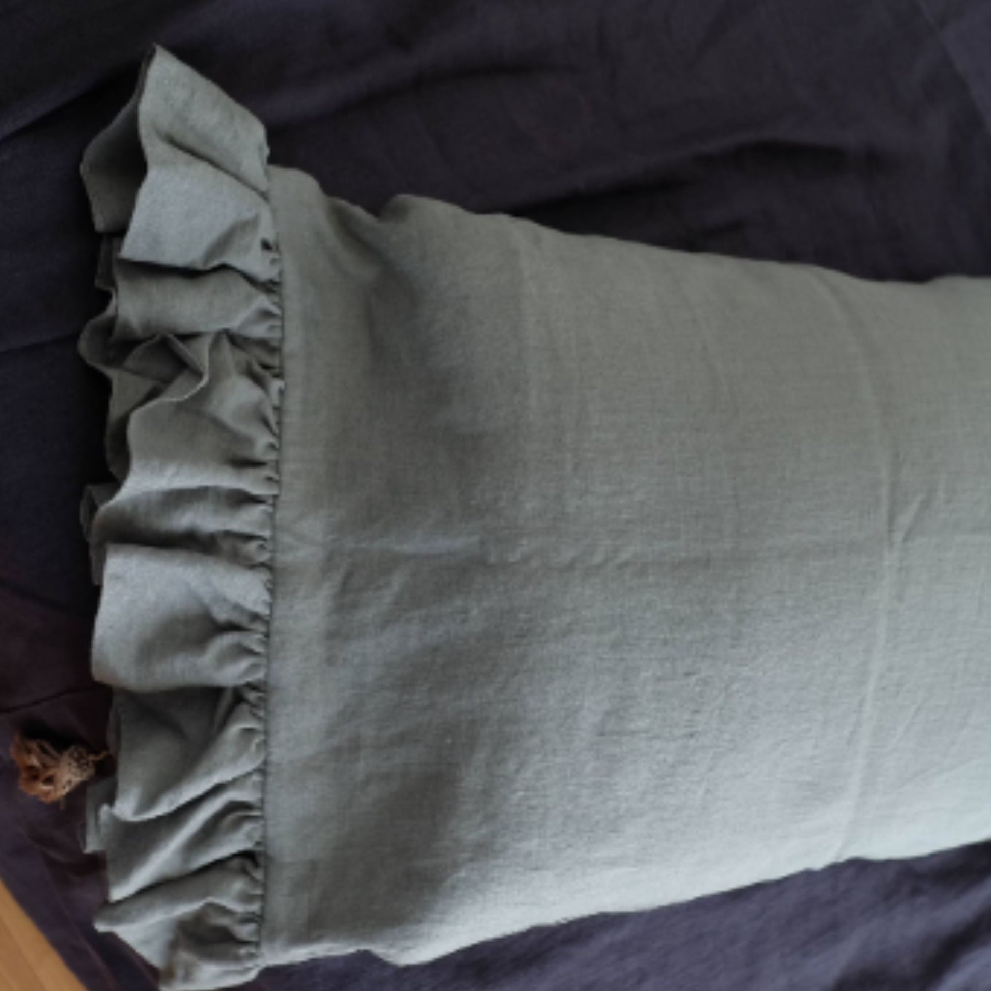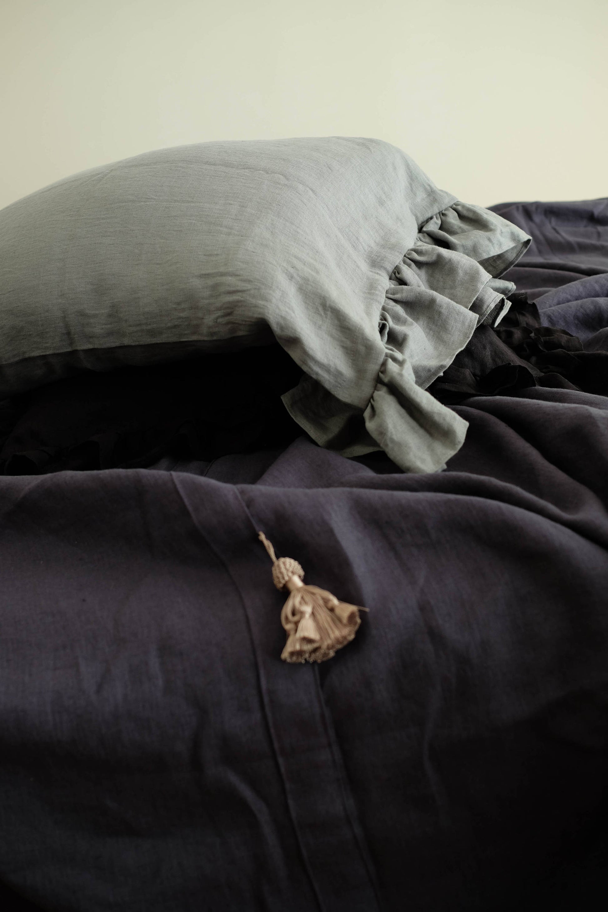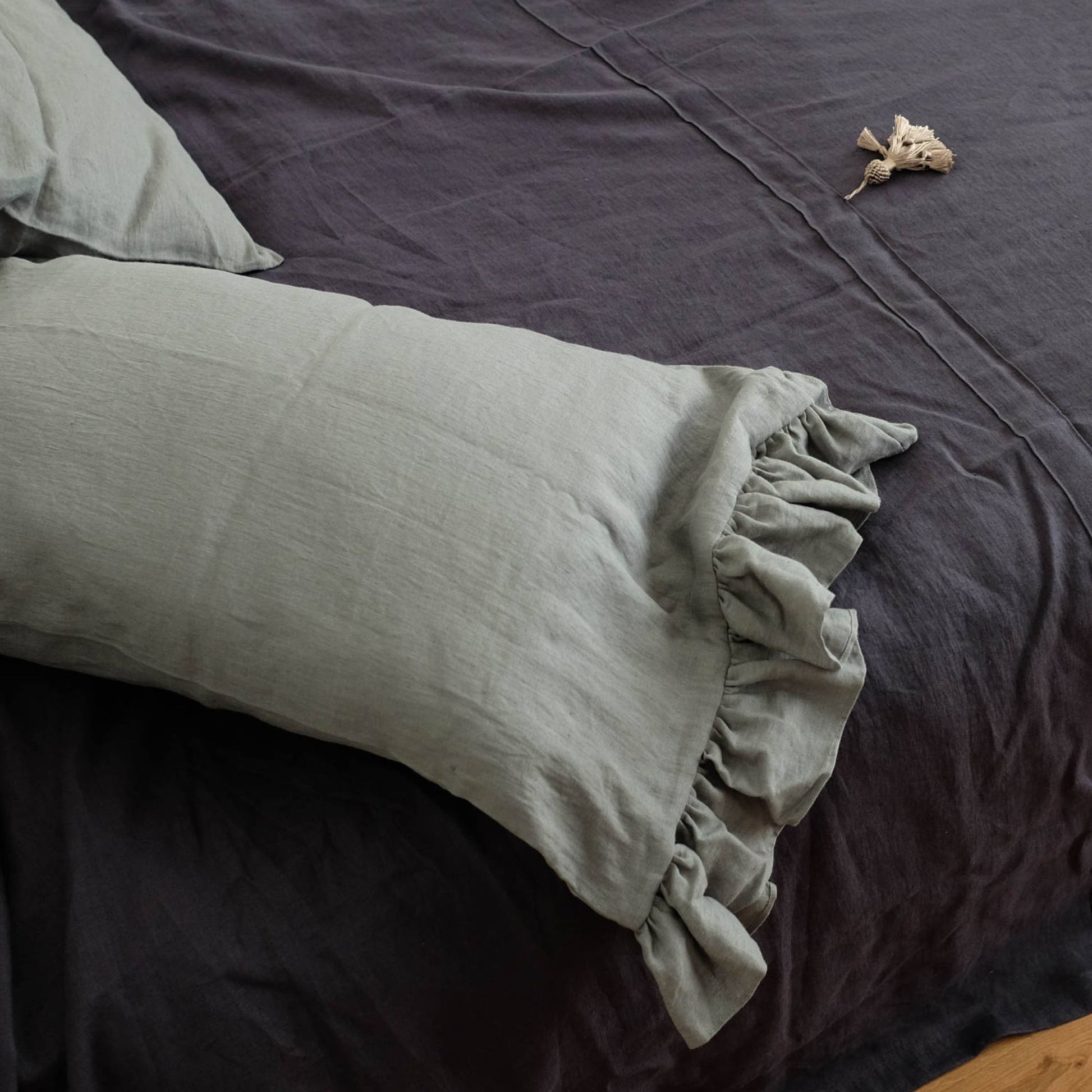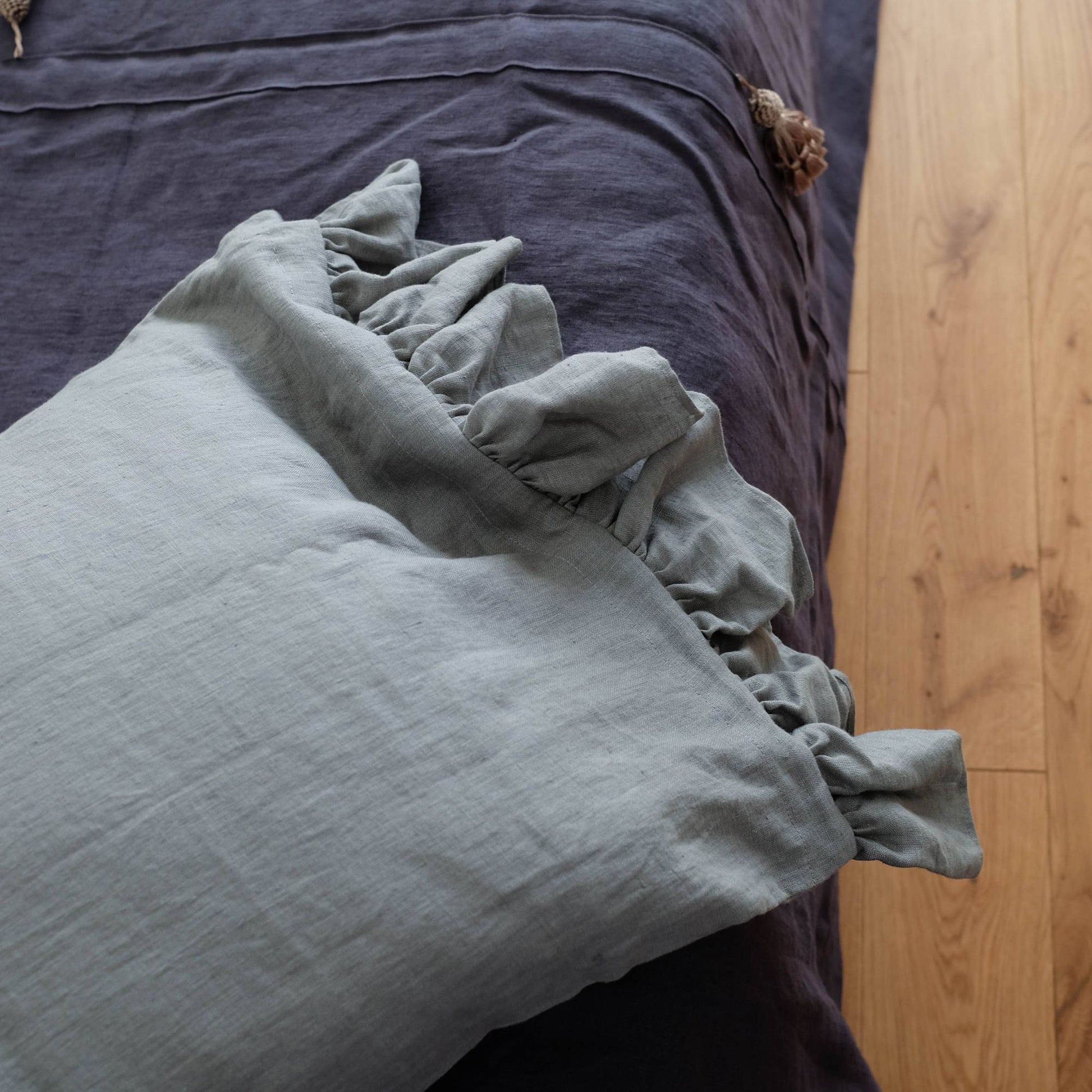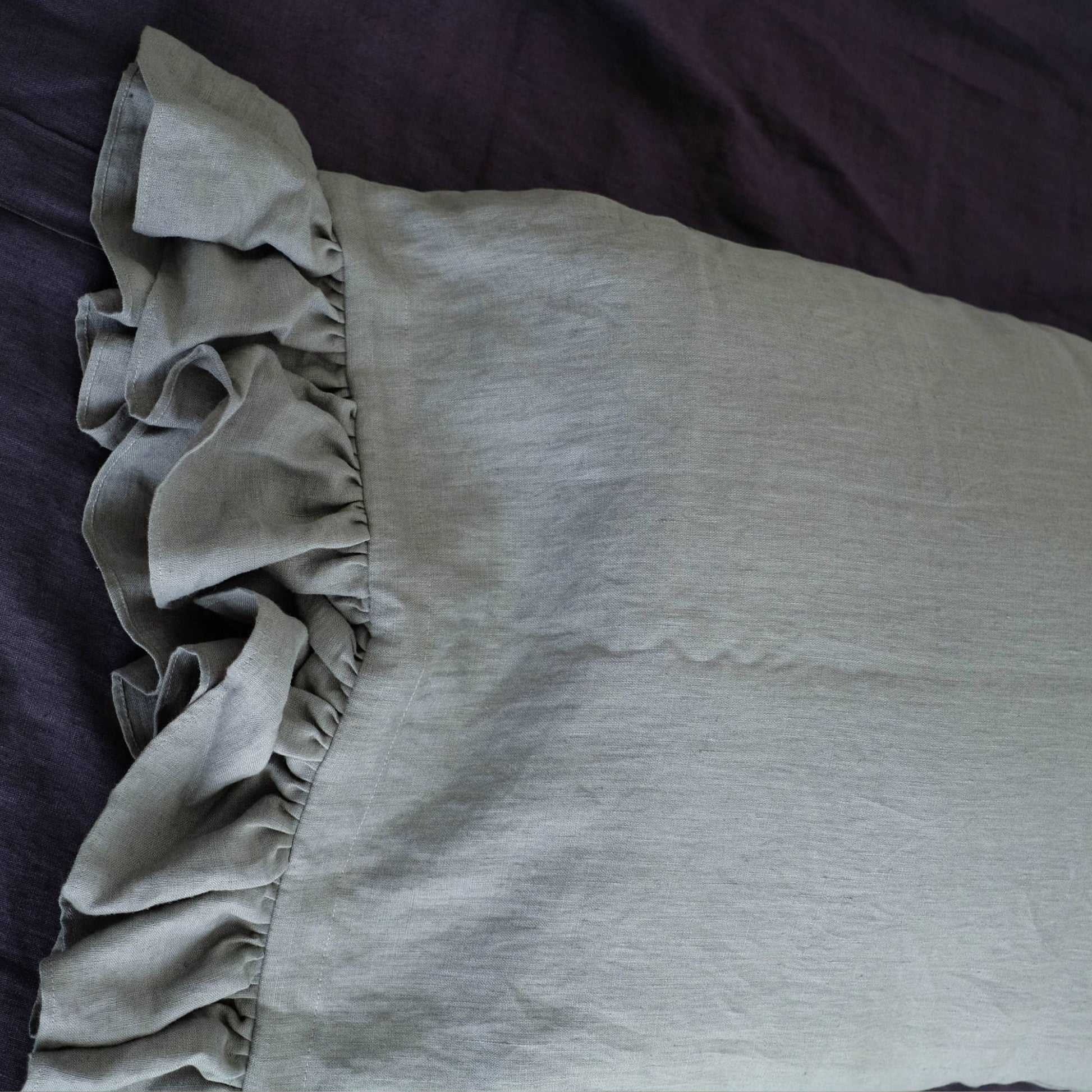 Made of 100% linen this ruffle sham is very soft and pleasant to your skin. Made of softened linen. Decorated with 3.5" (9cm) ruffle.