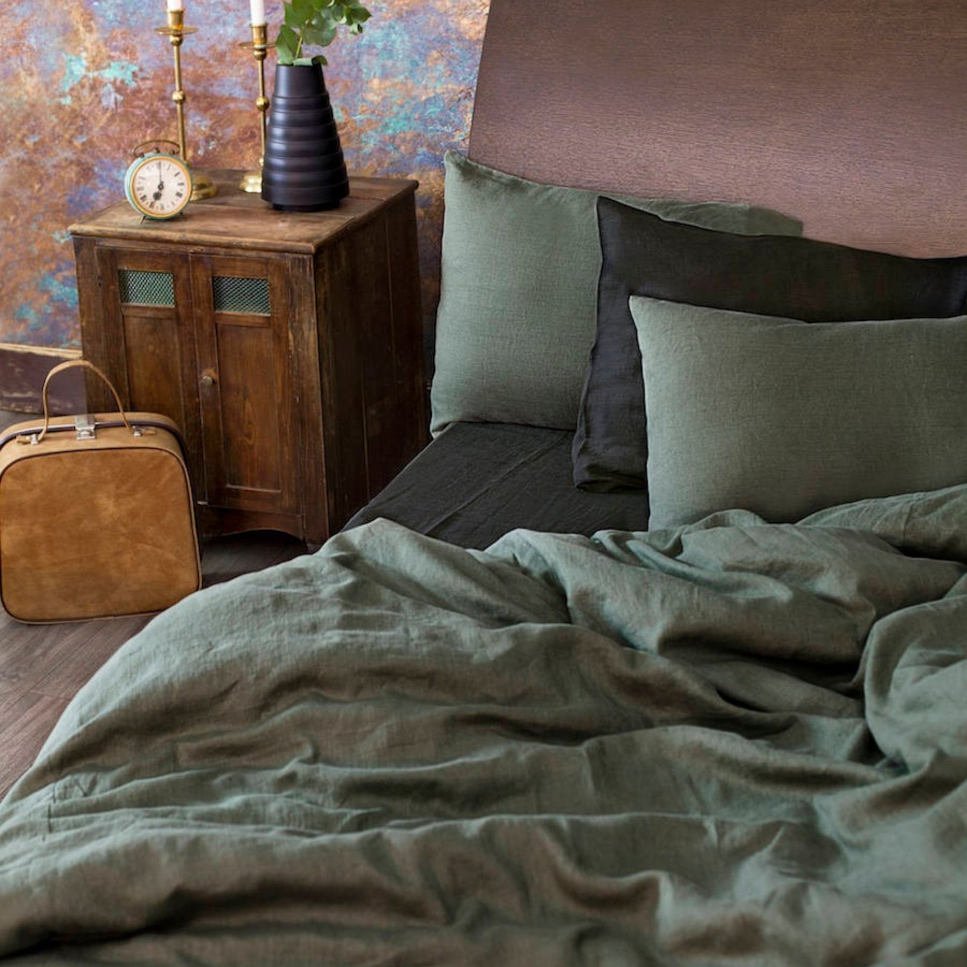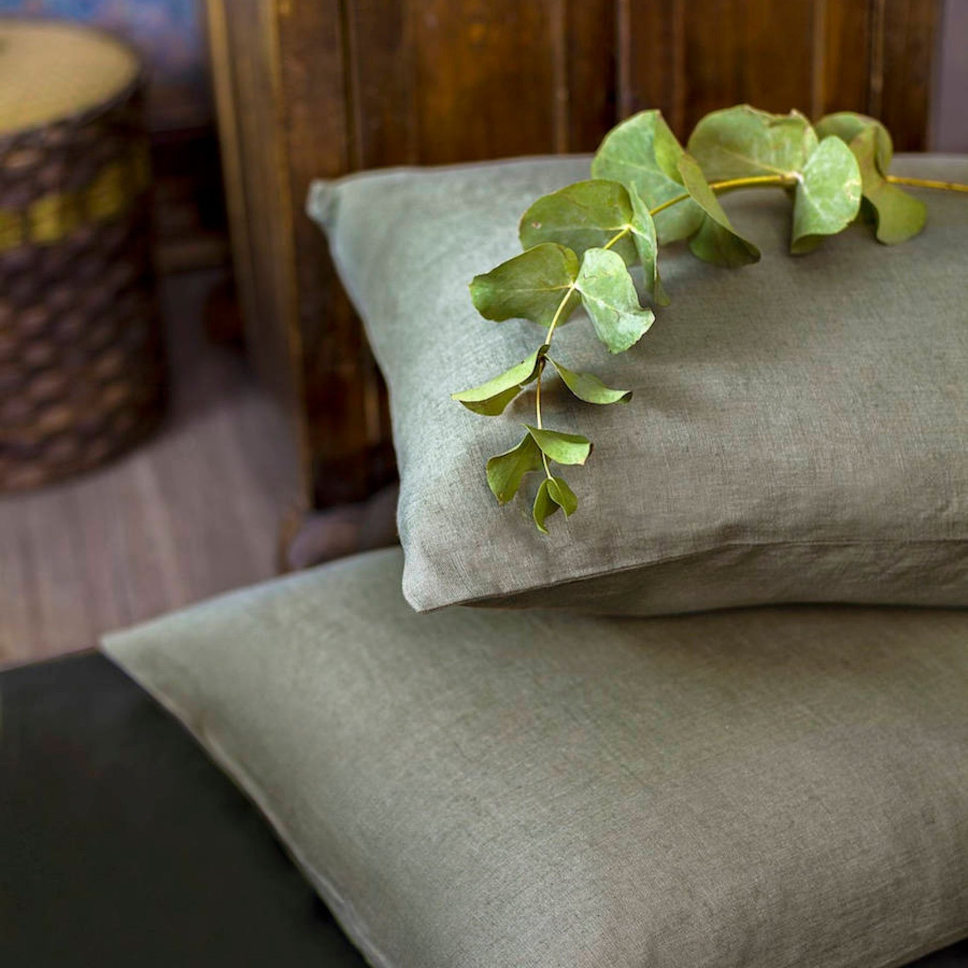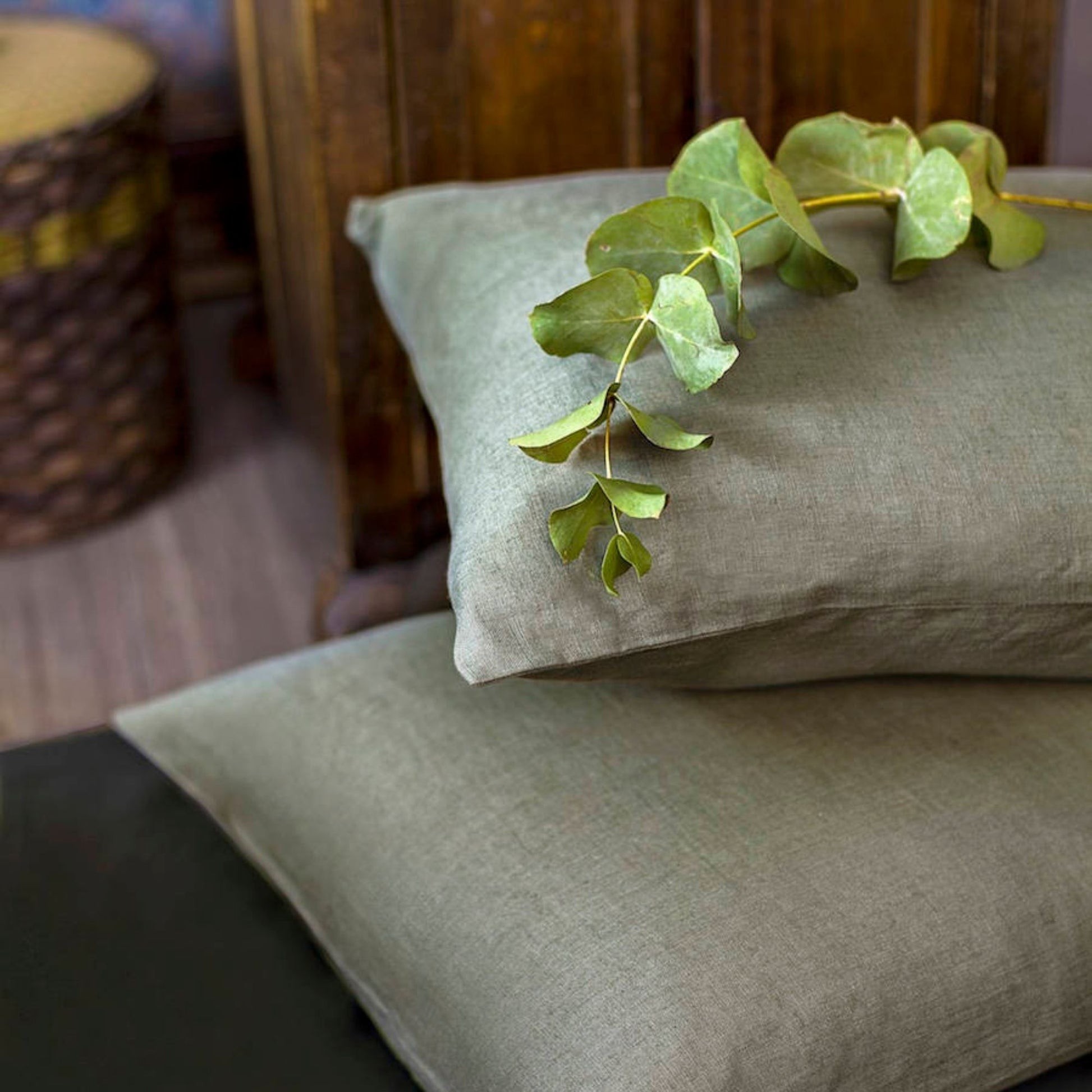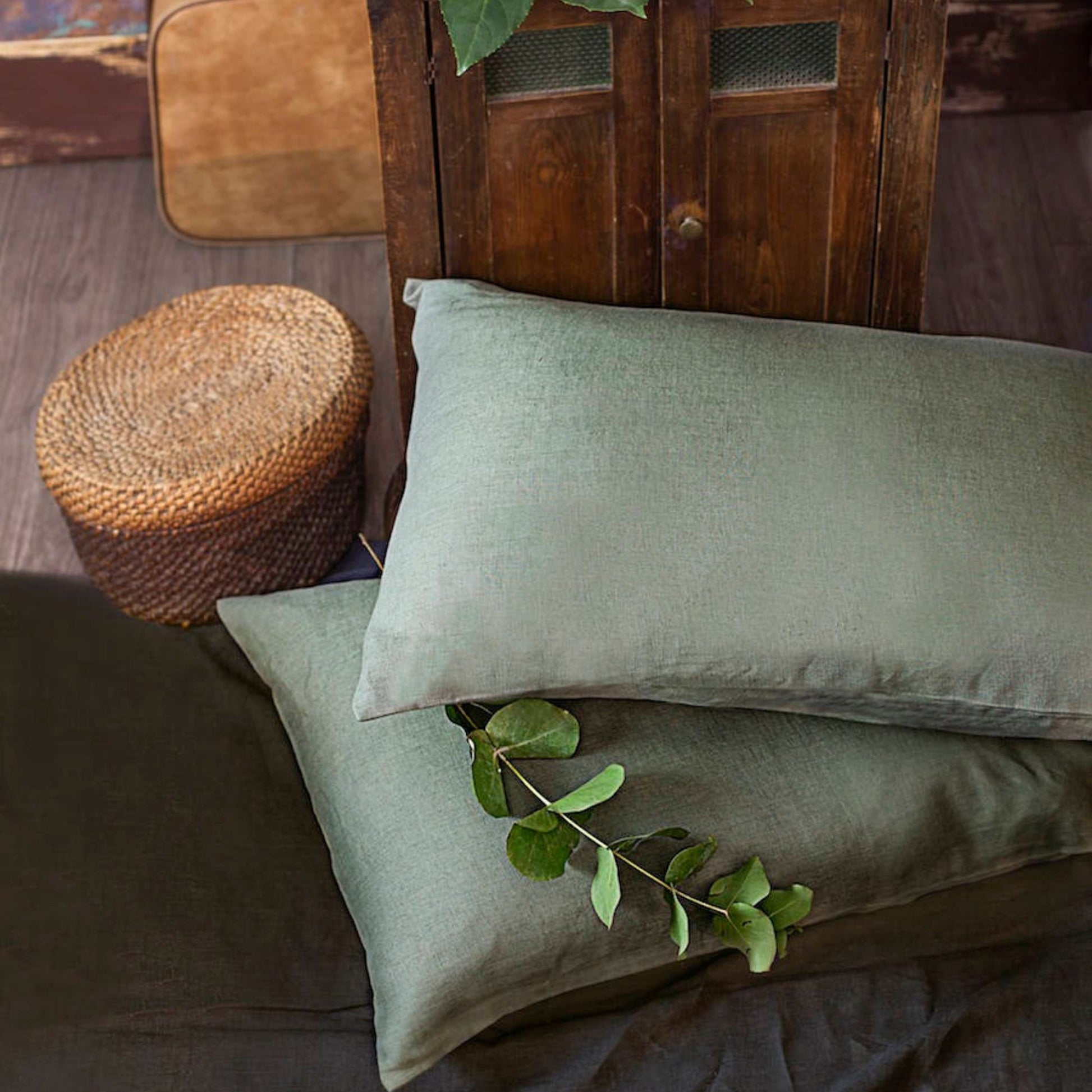 Moss Green Linen Pillowcase