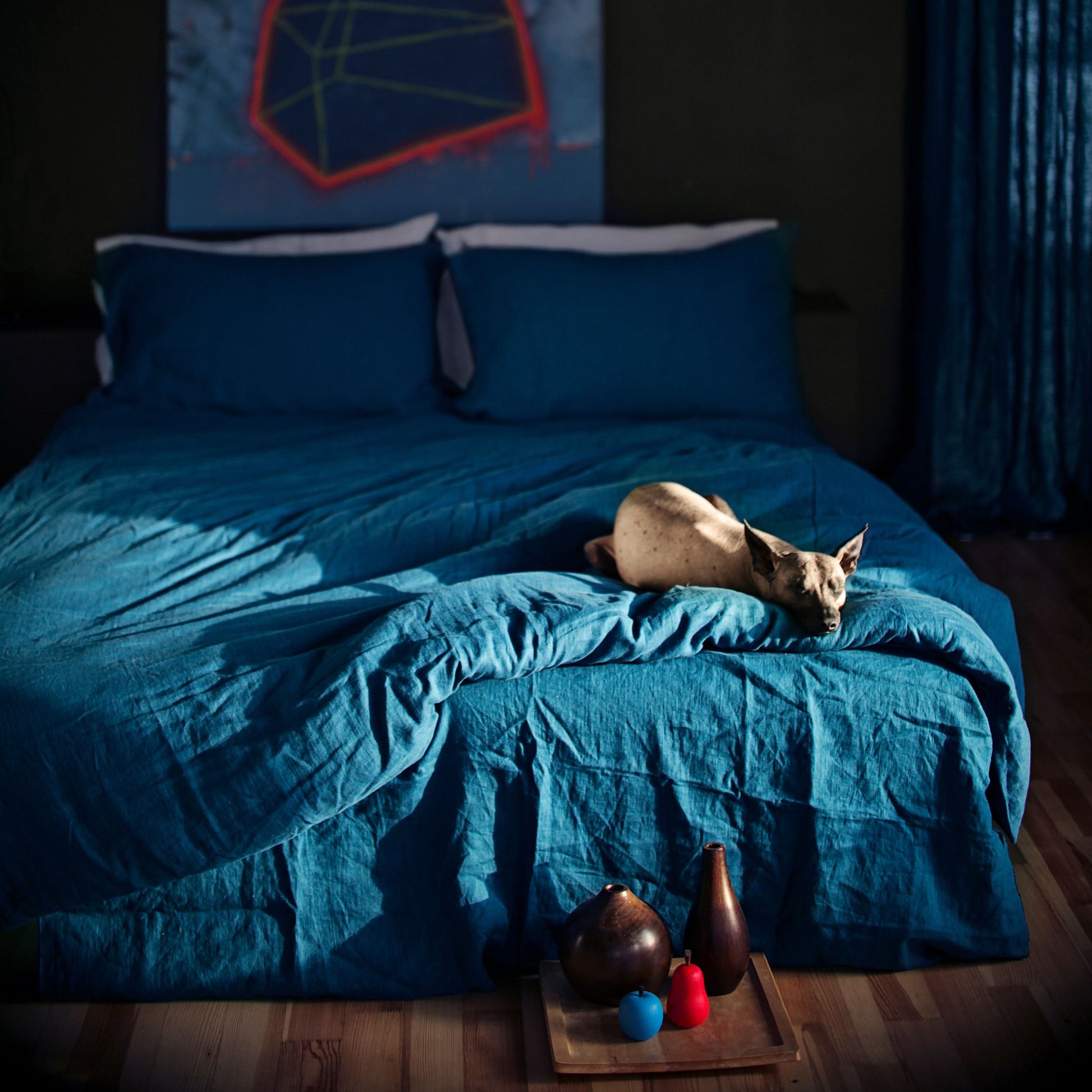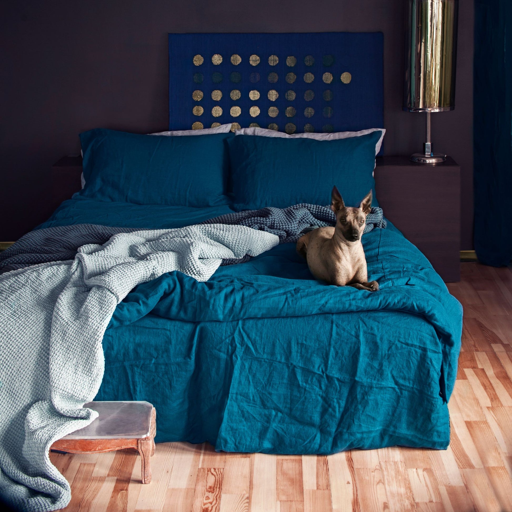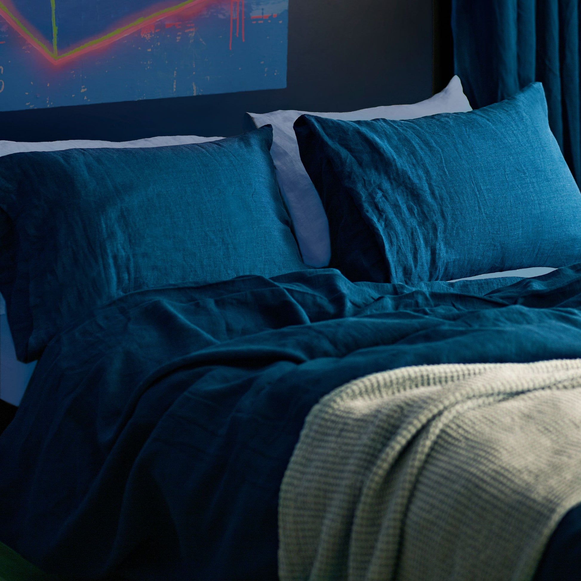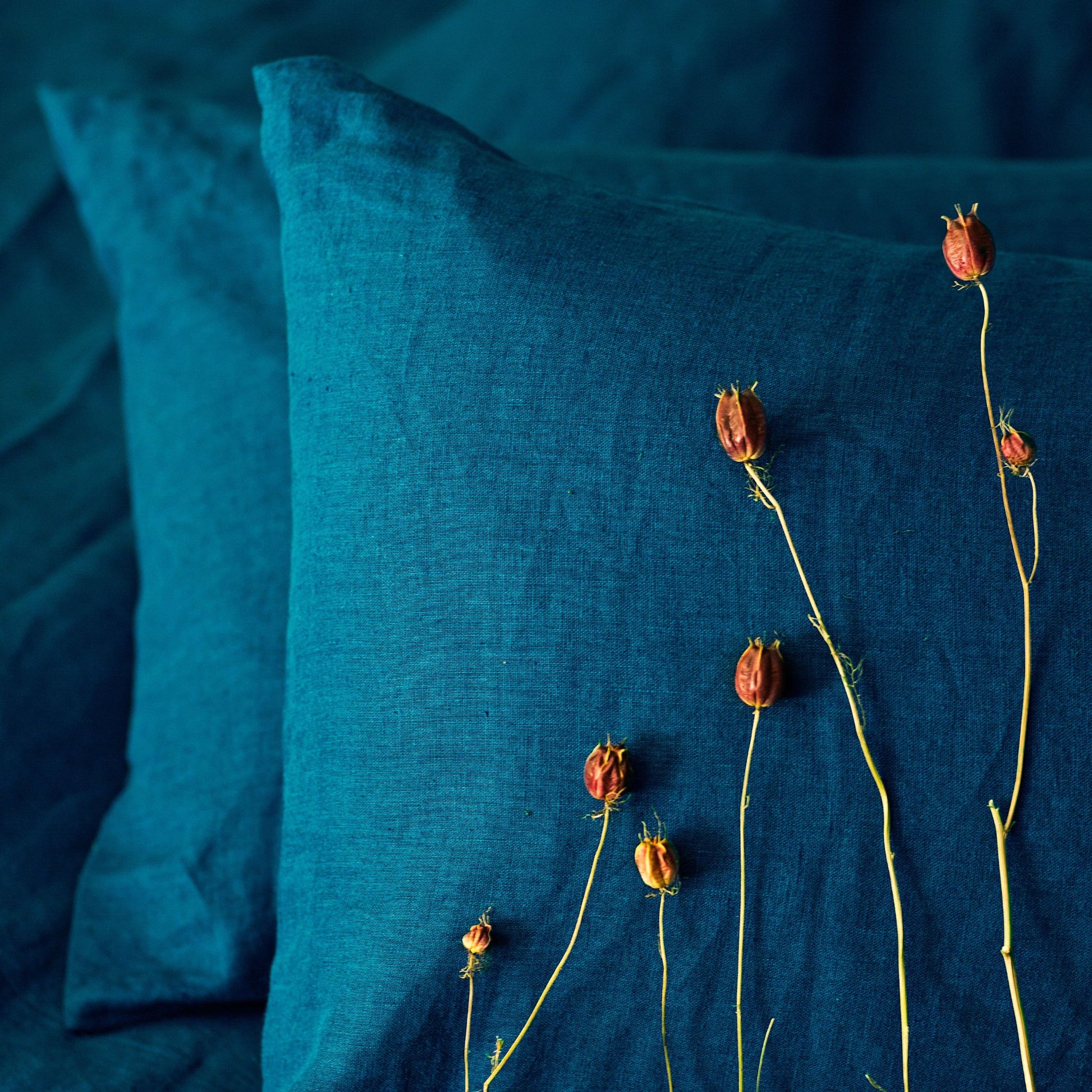 Stonewashed for softness and naturally breathable, this duvet cover brings depth, texture, and quiet luxury to your bedroom. Sea Blue, a moody dark teal reminiscent of still coastal waters, is elegant and timeless — a softened shade that brings quiet depth to any space.
