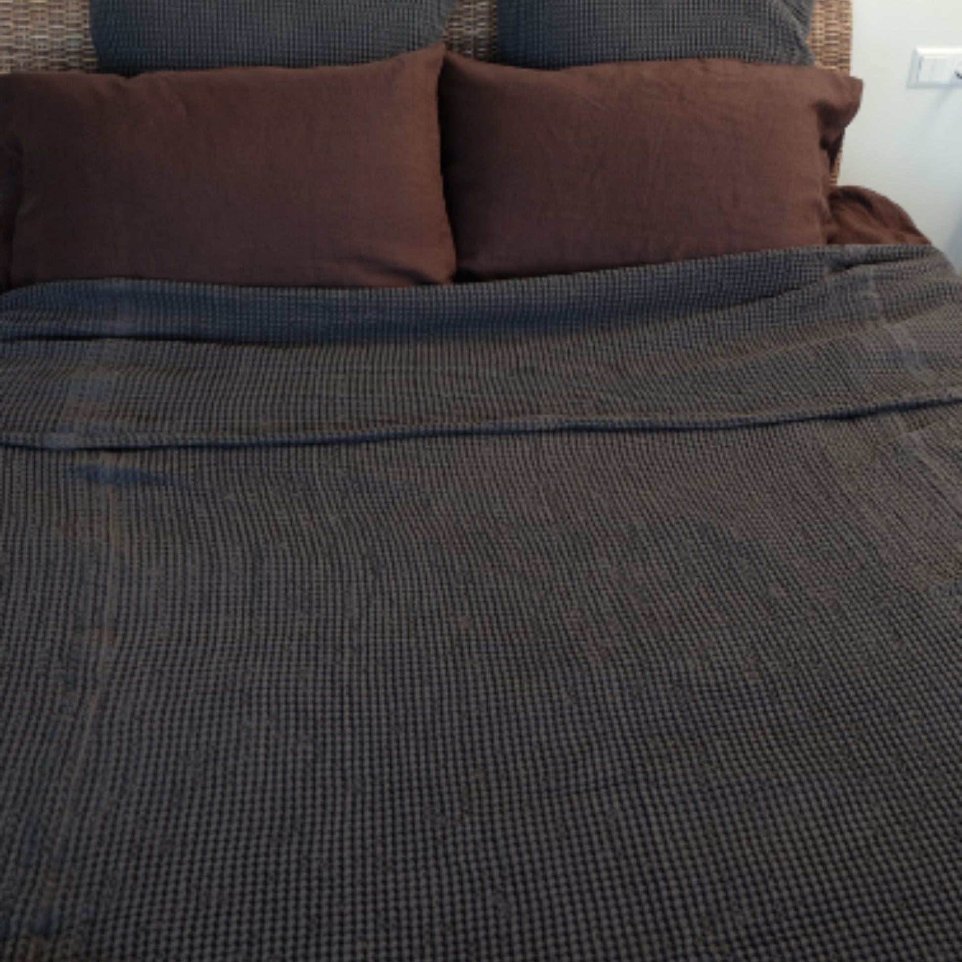 Dark Gray Waffle textured Linen Blanket